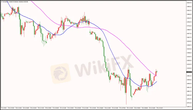 Vào thứ Sáu tuần trước (26/07), giá cao nhất và thấp nhất của Nasdaq lần lượt là 19135 USD và 18834 USD, biên độ dao động khoảng 301 điểm, lợi nhuận trên mỗi lot khoảng 6020 USD, tỷ suất lợi nhuận khoảng 3.01 lần (kỹ quỹ 2000 USD/lot).
