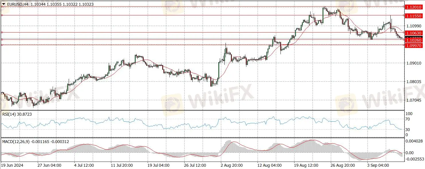 Euro giảm 0,44% vào thứ Hai, kéo dài đà giảm sau khi phá vỡ mức hỗ trợ 1,1100. Áp lực giảm này đến từ kỳ vọng Ngân hàng Trung ương Châu Âu sẽ cắt giảm lãi suất vào ngày 12 tháng 9, với EUR/USD giao dịch quanh mức 1,1036 khi phiên giao dịch châu Á bắt đầu. Chỉ số USD tăng, kiểm tra mức 101,70, khi dữ liệu thị trường lao động của Mỹ không rõ ràng làm giảm hy vọng về việc giảm lãi suất 50 điểm cơ bản của Fed.