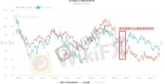 Kể từ khi cựu Tổng thống Donald Trump khởi động “cuộc chiến thuế quan toàn cầu”, đồng USD đã giảm gần 10% so với các đồng tiền chủ chốt khác. Điều này đã khiến niềm tin vào USD bị lung lay, và nếu quan sát từ góc độ chênh lệch lãi suất giữa các quốc gia, tỷ giá hối đoái dường như đang mất đi mối liên kết logic. Nói cách khác, lợi suất trái phiếu Kho bạc Mỹ dài hạn tăng cao nhưng chỉ số USD lại không tăng theo.