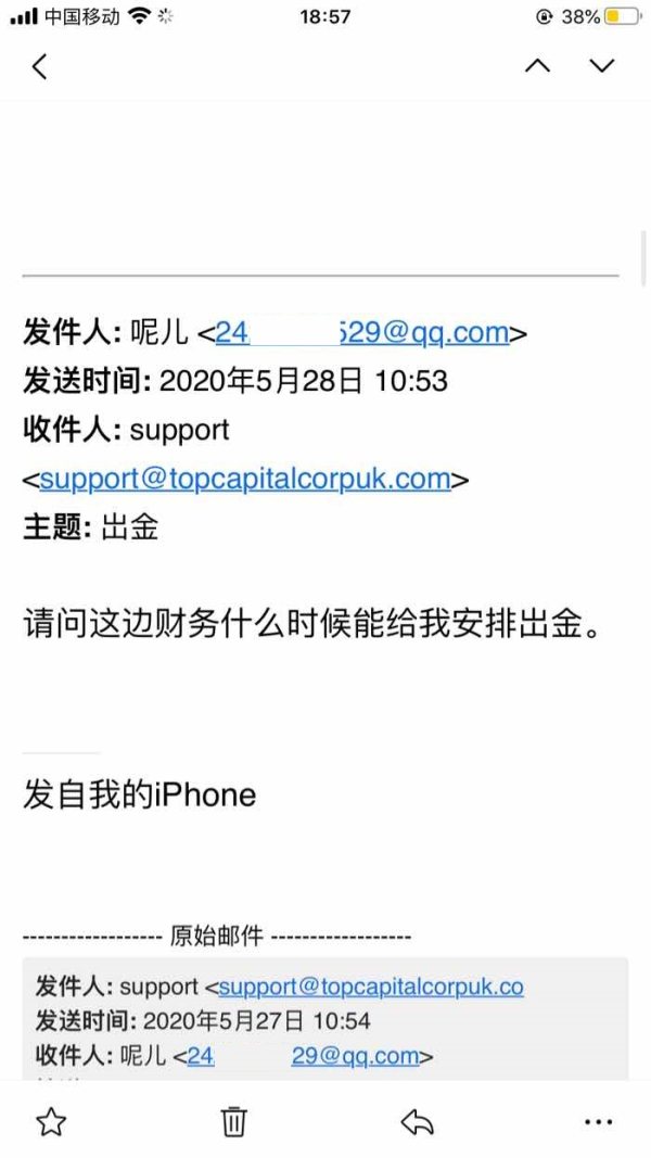 不给出金还回邮件说已经交财务部门