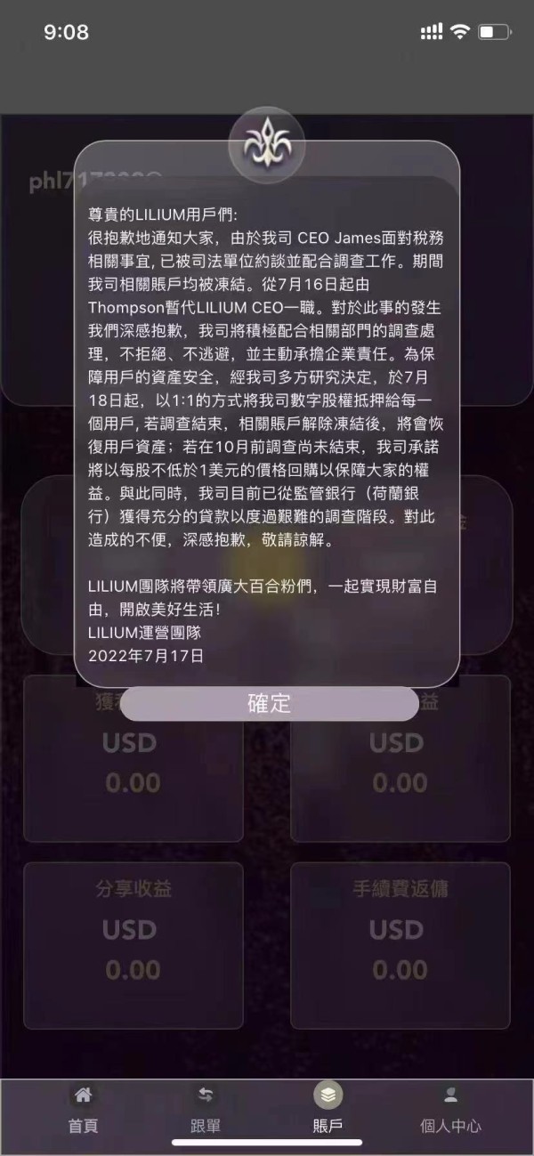 该用户未证明是Lilium的交易者