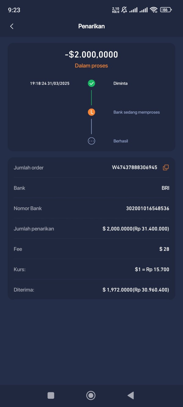 Sudah 4 hari belum cair dua widrawal di akun iq trade saya , tidak masuk ke rekening saya . Keterangan dalam proses , setiap di konfirmasi ke cs selalu berdalih masih proses terus .
