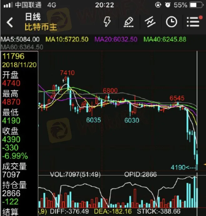 直到11月14日,比特币的价格还徘徊在6400美元左右的水平;但在最近一个星期内,比特币暴跌近38%。截至北京时间21日凌晨4点半,coinbase平台比特币报价跌破4100美元,创下了13个月以来的新低。