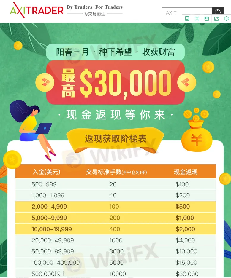 AXItrader3月交易返现每手多返5美元