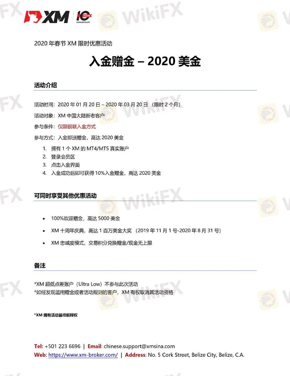 XM外汇10%入金赠金活动,欢迎大家踊跃报名参加限时活动!2020年1月20日~2020年3月20日(2个月),入金额的10%, 高达2020美金.赠金不能出金,本金及盈利随时可提取。