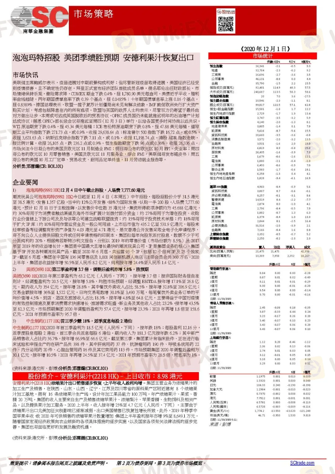 摘要:市场策略:泡泡玛特招股 美团季绩胜预期 股份推介:安德利果汁