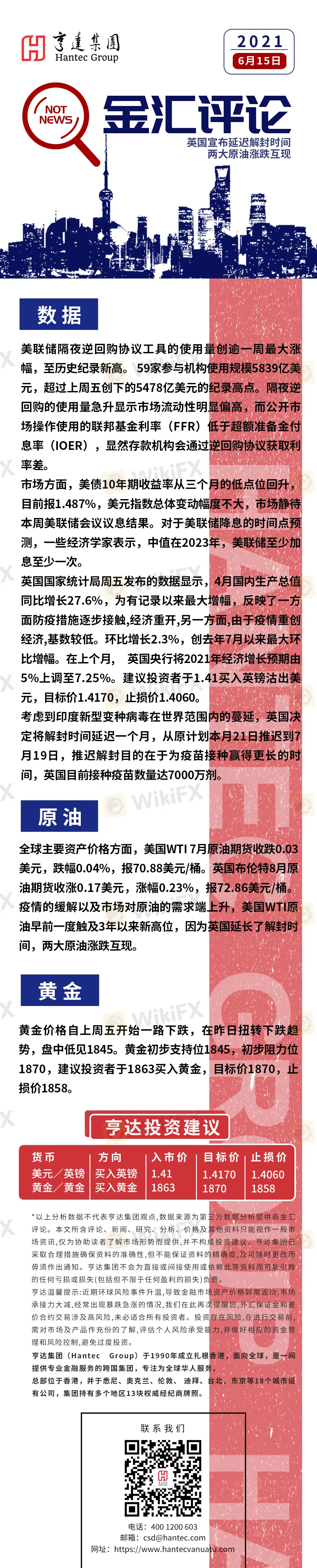 摘要:英国宣布延迟解封时间 两大原油涨跌互现