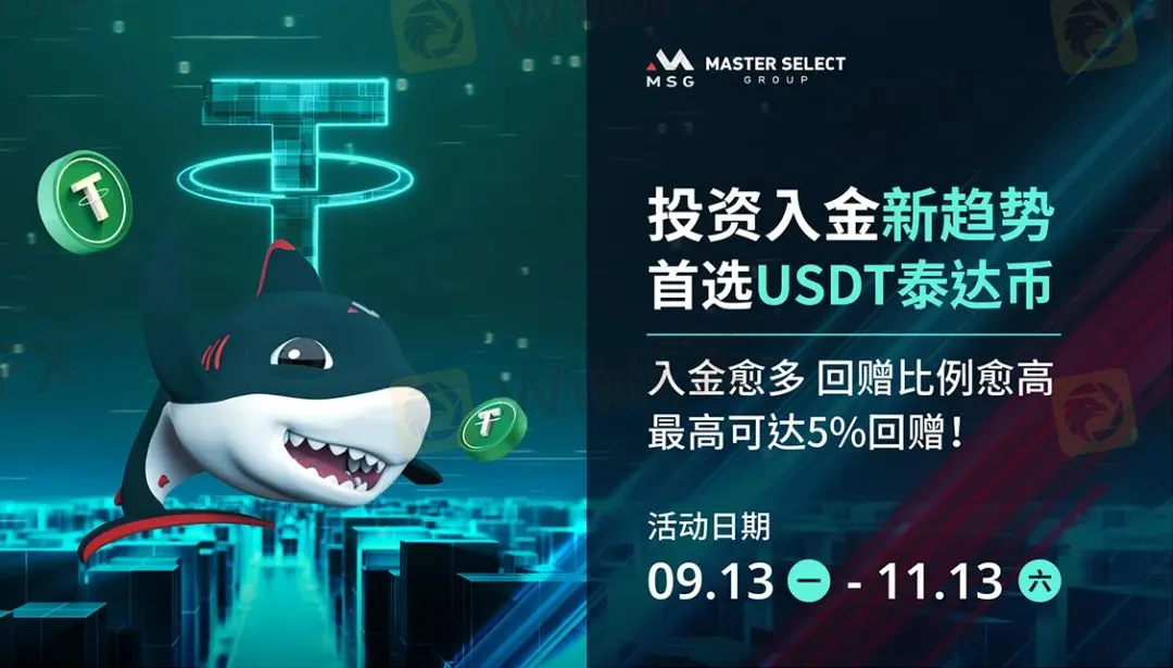 MSG迈盛集团全面开启“USDT时代”,选择USDT入金享受高达5%回赠!