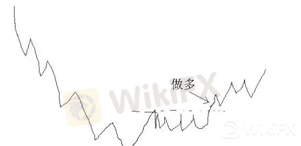 如下图所示,那个做多的位置,是突破箱体上沿进场,局部看是“追涨杀跌”,但宏观来看,它其实是大趋势反转拐头后的一个确认点。