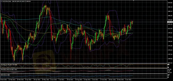 因為烏克蘭問題,所以美國及其他西方盟友與俄羅斯之間的危機升級。美國國務院警告,美國公民不要去烏克蘭和俄羅斯旅行。有消息指估計有10萬名俄羅斯軍隊在邊境集結,歐洲存在爆發新一輪衝突的風險。黃金從烏克蘭和中東地區的地緣政治緊張局勢中獲得支持。金價在上週四(1/20)升至近1850美元的兩個月高位後,維持在1840美元附近的盤整模式。週一金價在一度測試1830.00美元/盎司的支撐後反彈。