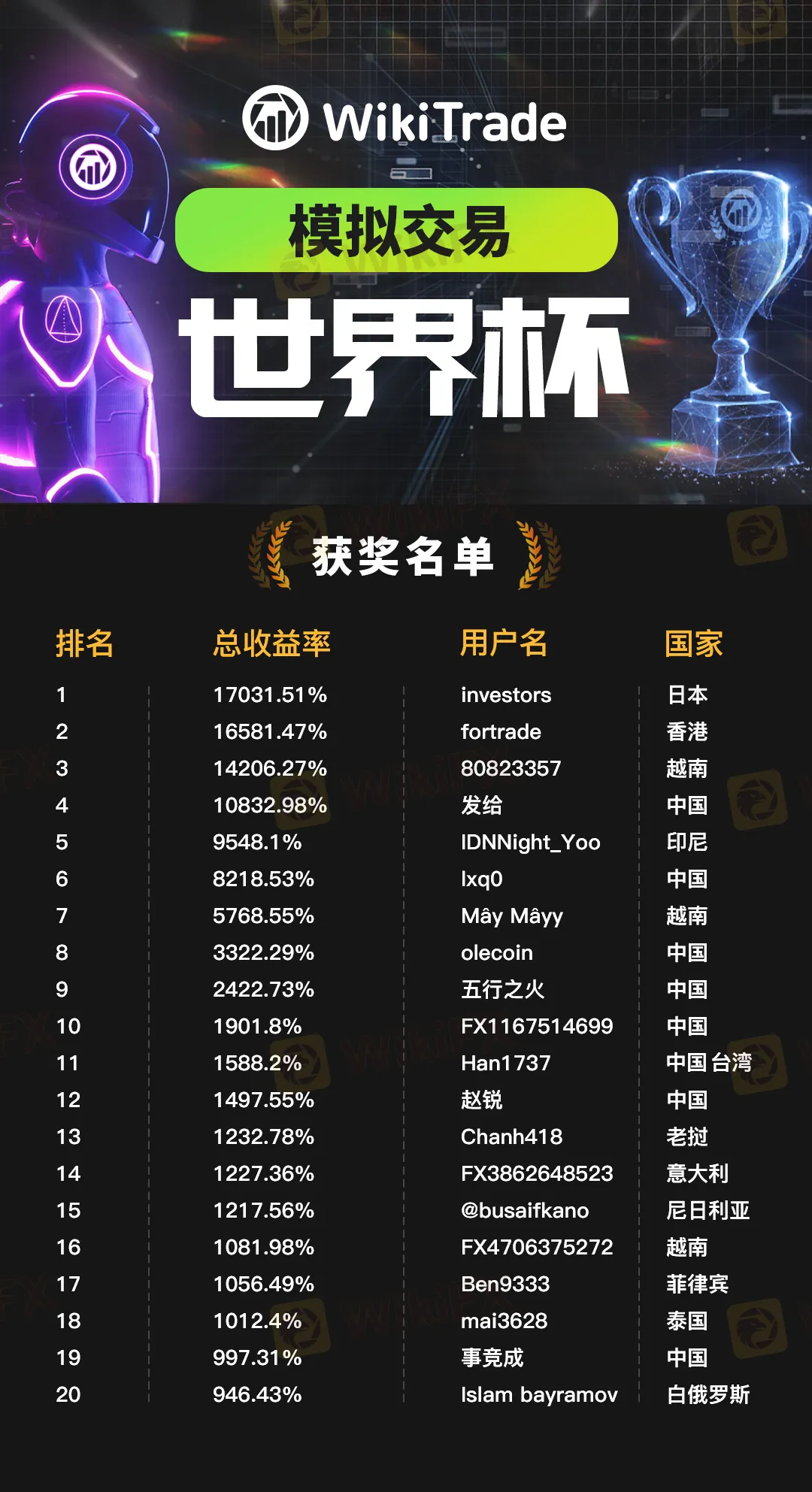 摘要:自2022年以来,复杂多变的国际政治经济局势不仅带动了国际金融市场的发展,同样也提升了外汇市场的交易热度。为了促进行业发展,降低交易门槛,外汇天眼秉承着“让交易更容易”的理念,于2023年初在外汇天眼APP上推出了外汇模拟交易功能,并开展了为期两个月、首届外汇模拟交易世界杯大赛。目前该比赛已于2023年3月31日顺利闭幕(新加坡时间,GMT+08:00)。经过激烈的角逐,比赛名单也已经确定!