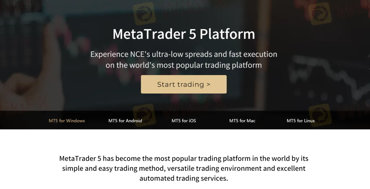 NCE提供MT5交易平台。MetaTrader 5以其简单易用的交易方法、多功能的交易环境和优秀的自动化交易服务成为全球最受欢迎的交易平台。它拥有强大的交易系统,支持3种执行模式和8种订单类型。