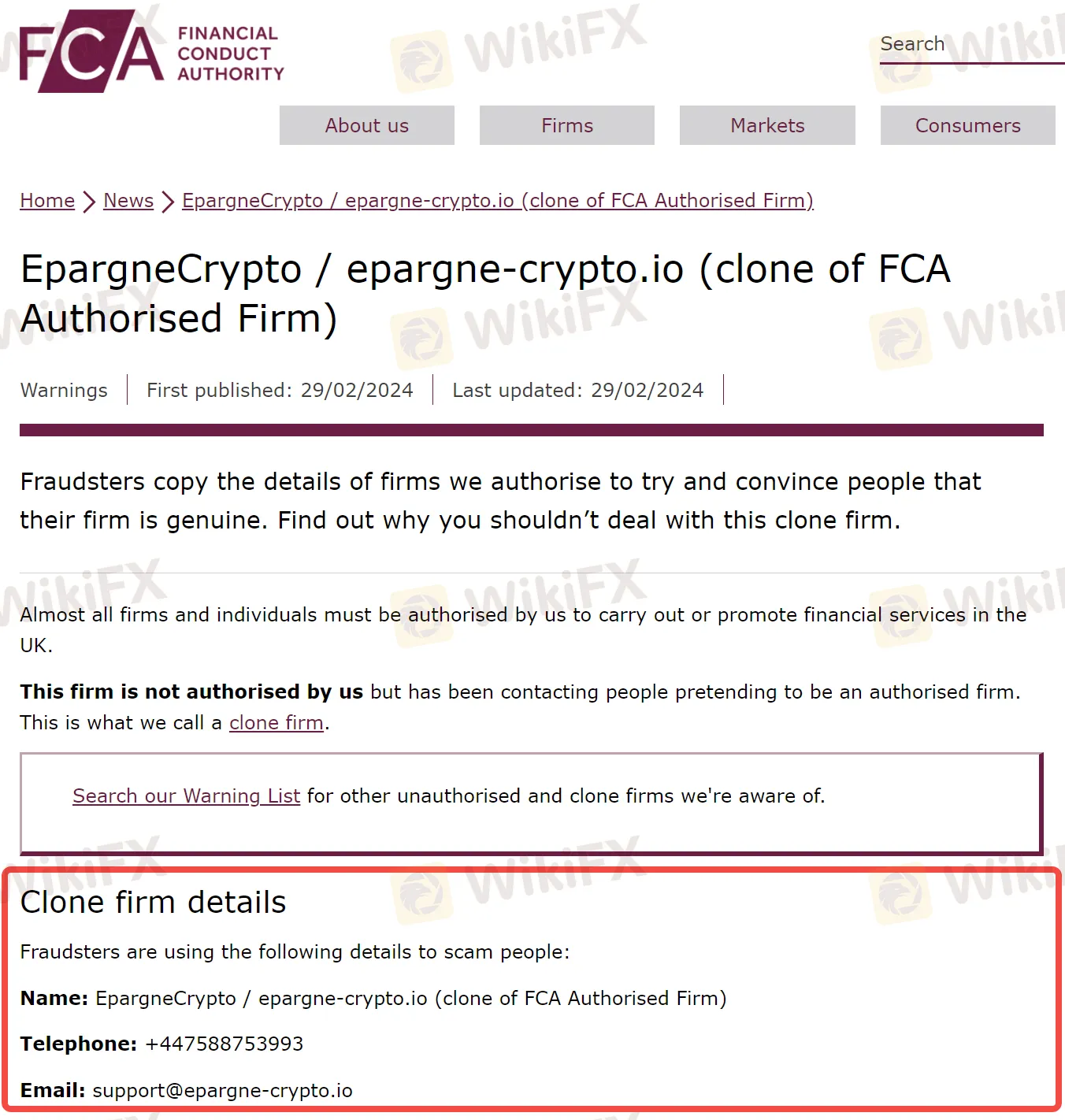 FCA警告公众,一旦发现可疑公司,应立即检验其注册信息。可以在FCA官网查询该公司的授权登记详情。如果存在假冒注册等情况,应立即向FCA举报。