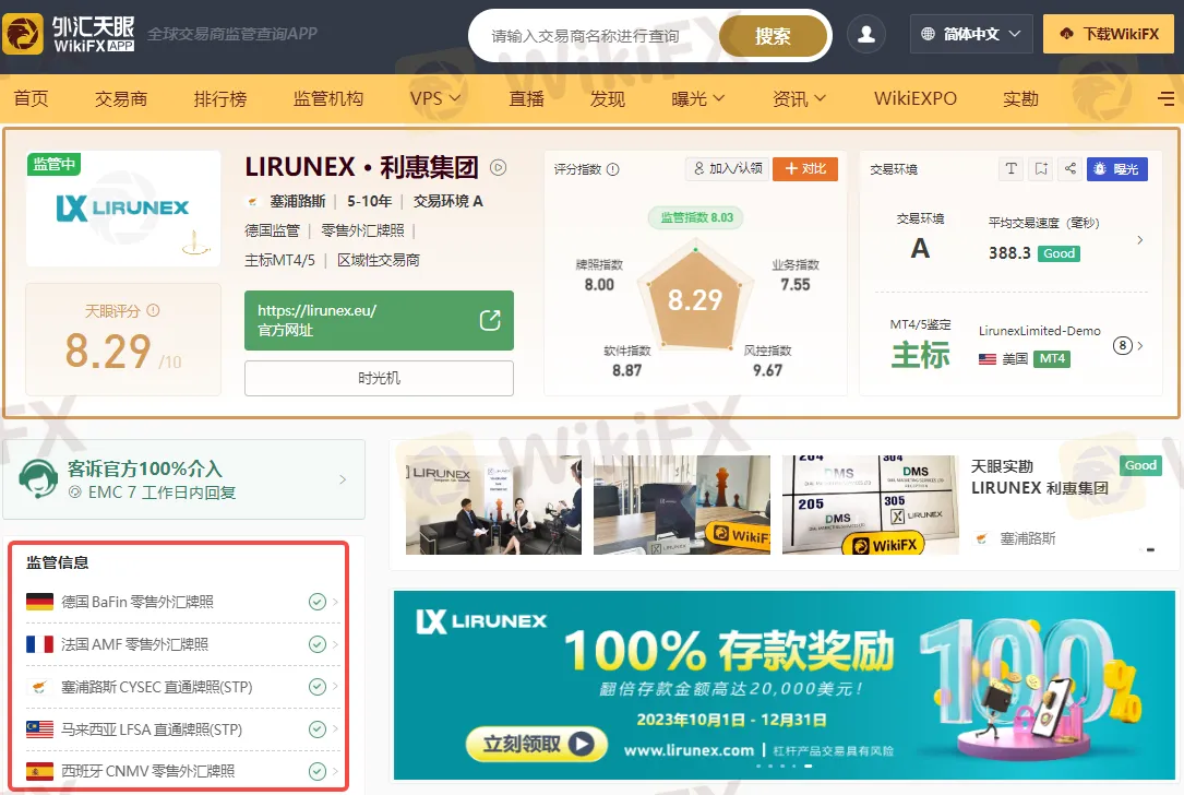 通过外汇天眼查询可知,LIRUNEX目前受到德国联邦金融监管局(BaFin)、法国金融市场管理局(AMF)和塞浦路斯证券交易委员会(CySEC)等监管机构监管。持有德国联邦金融监管局(BaFin) 零售外汇牌照、法国金融市场管理局(AMF)零售外汇牌照、塞浦路斯证券交易委员会(CySEC)直通牌照(STP)、马来西亚纳闽金融服务管理局(LFSA)直通牌照(STP)和西班牙国家证券市场委员会(CNMV)零售外汇牌照。