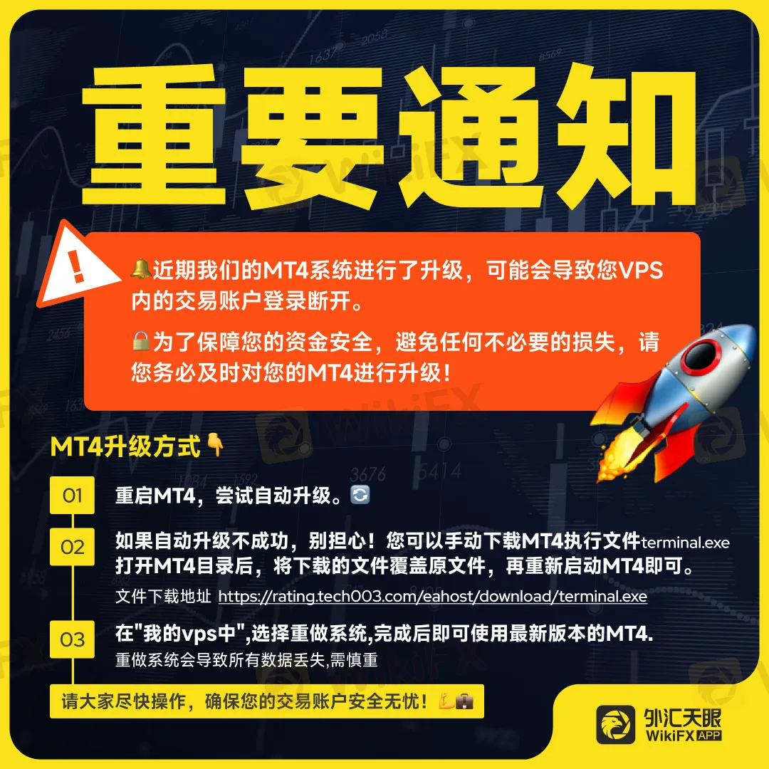 重要通知:天眼云VPS用户请及时升级更新MT4!