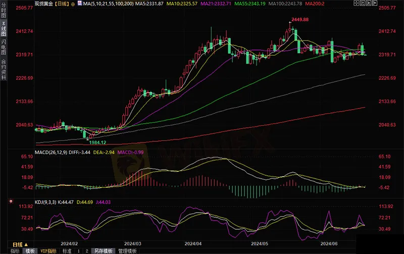 上周黄金开局强劲,但在周末前下跌。上周五(6月12日),黄金未能维持在 2350 美元/盎司上方的可持续涨幅。不利的一面是,黄金成功守住了 2300 美元/盎司左右的支撑位。最终,现货黄金收报2321.19美元/盎司,周线下跌0.49%。