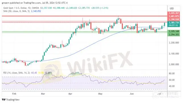 如果金价能够收于 2390-2400 美元阻力位上方,则将走向下一个阻力位,即 2445-2450 美元区间。