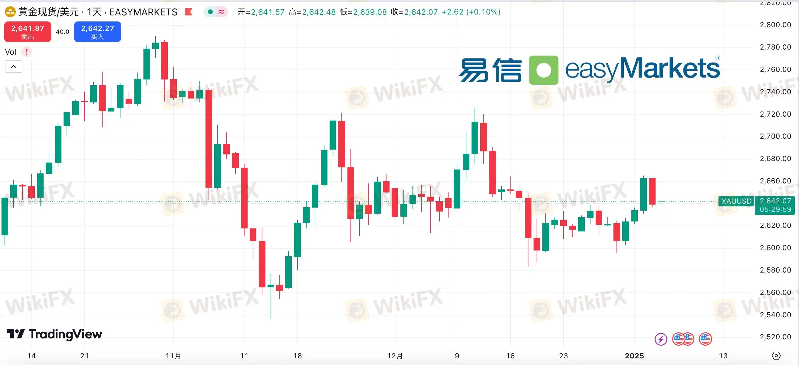 因市场预期特朗普即将上任后可能实施关税和保护主义政策,现货黄金价格持续走低,最终下跌0.72%,报2638.41美元/盎司。相比之下,现货白银表现较好,最终上涨0.26%,报29.60美元/盎司。