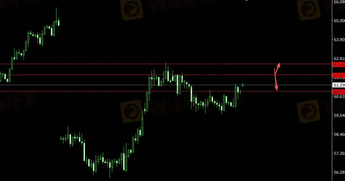 美元指数受支撑,原油反弹,关注支撑位60.930,4小时看多至62.490;关注压力位61.870,4小时看空至60.480。