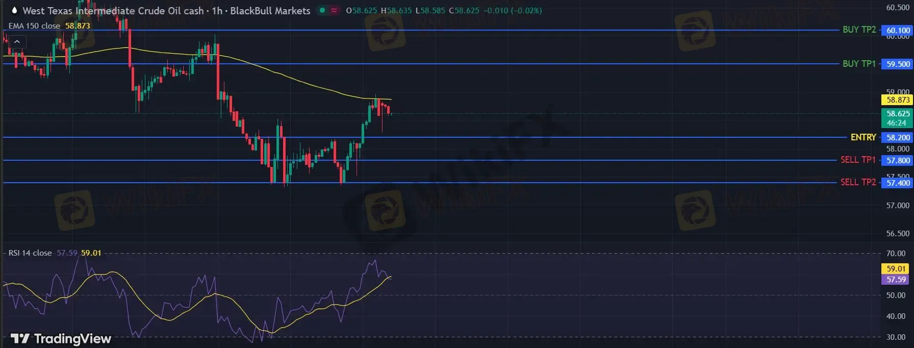在 58.20 之上,看涨,目标价位为 59.50 ,然后为 60.10 。