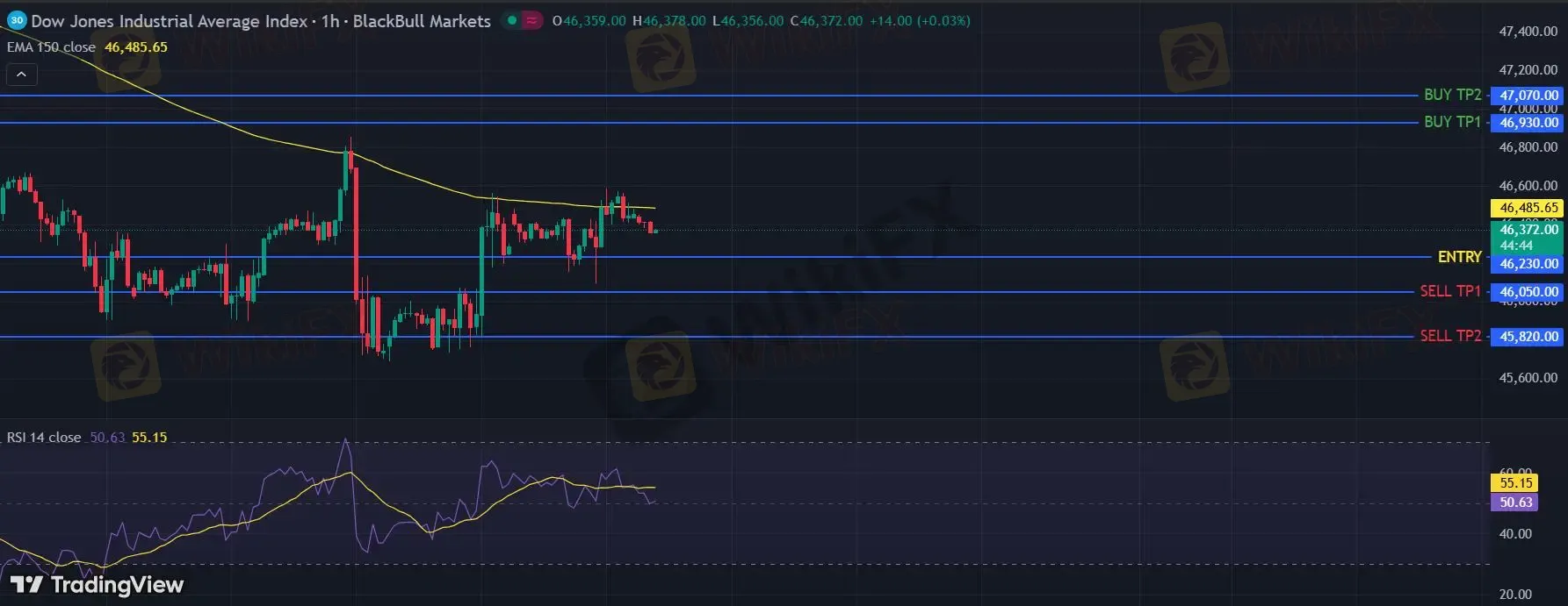 在 46230 下,看空,目标价位定在 46050 ,然后为 45820。