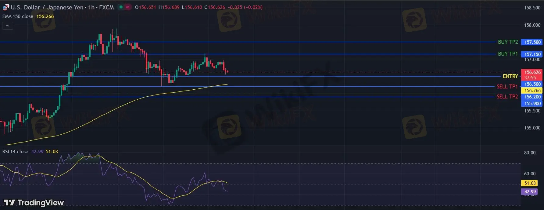 在 156.50 下,看空,目标价位定在 156.20 ,然后为 155.90。