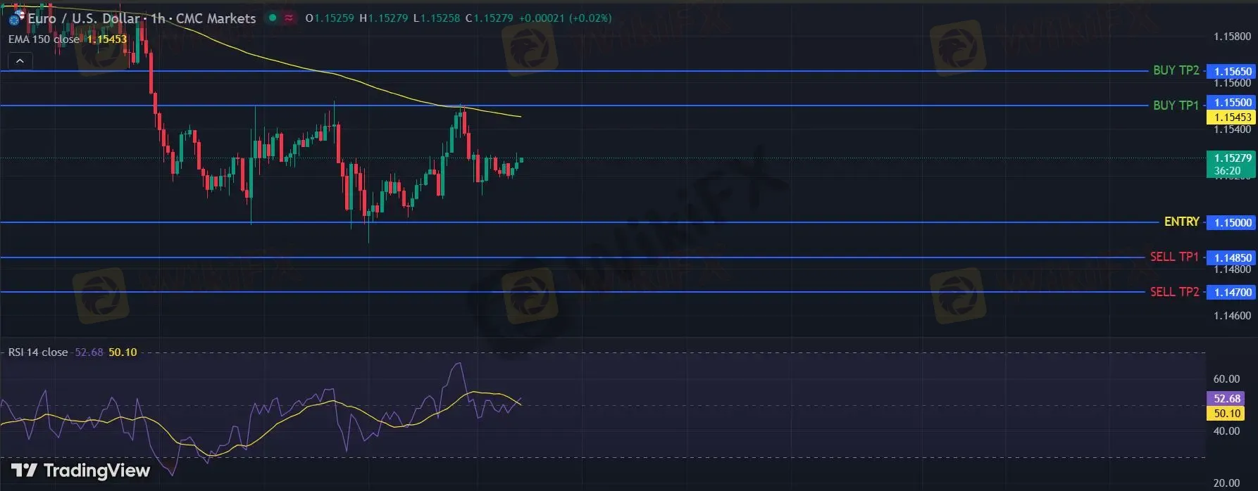 欧元/美元 当日内: 在1.1500之上,看涨。
