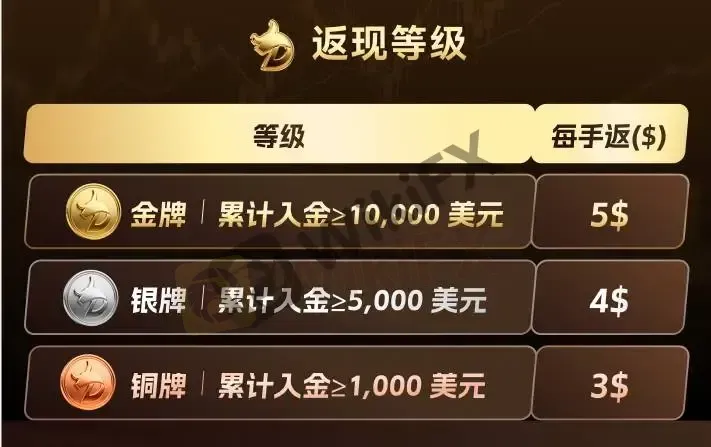 • 返现开启后,系统将按累计入金所达等级自动核算返现。