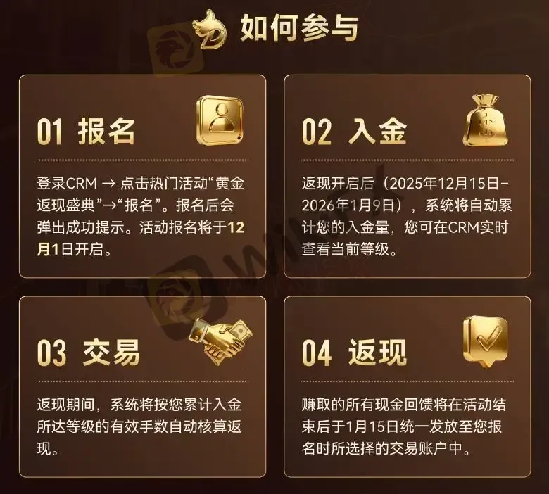 • 赚取的所有现金回馈将在活动结束后2026年1月15日统一发放至报名时所选择交易账户中。