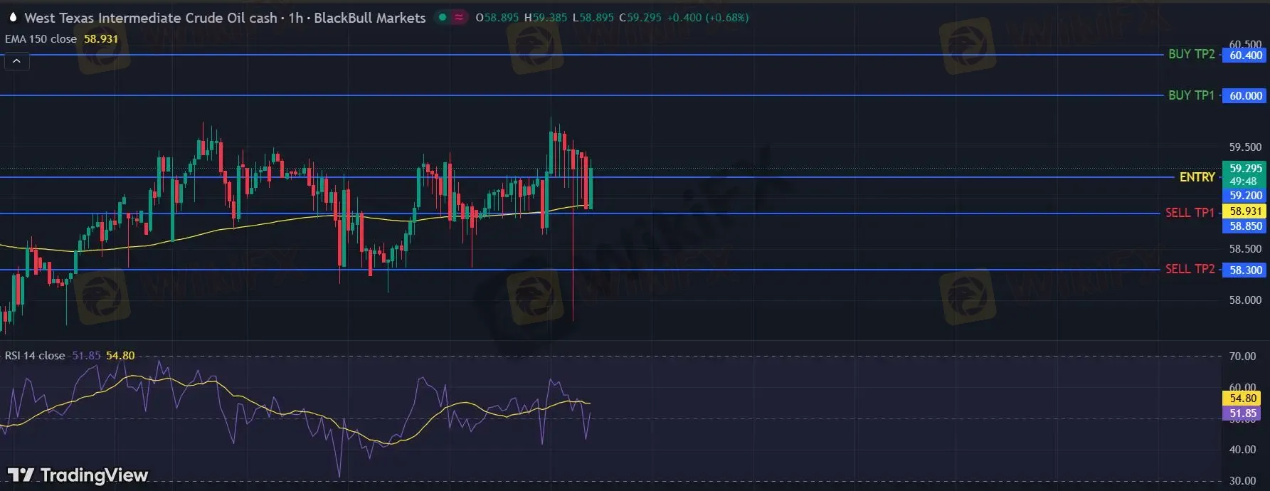 在 59.20 下,看空,目标价位定在 58.85 ,然后为 58.30。
