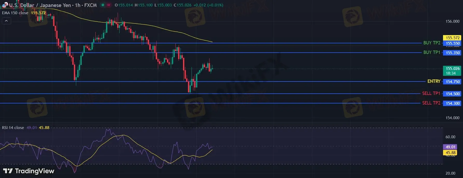 在 154.75 下,看空,目标价位定在 154.50 ,然后为 154.30。