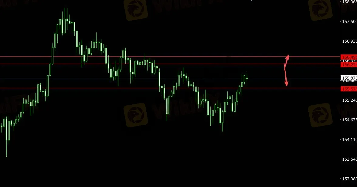 美元指数承压,日元受支撑,关注支撑位155.580,4小时看多至156.490;关注压力位156.270,4小时看空至155.430。