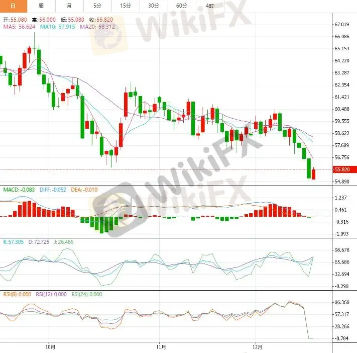 国际原油价格周三小幅反弹,未能延续昨日弱势,但目前已跌破关键箱体支撑,技术性反弹后或面临进一步下行压力。亚盘时段,WTI 原油交投于 55.67 美元/桶附近。此前,布伦特原油接连失守 60 美元和 59 美元关键心理关口,而美国原油一度跌破 55 美元/桶,双双刷新 2021 年初以来的价格低位,市场空头氛围浓厚。