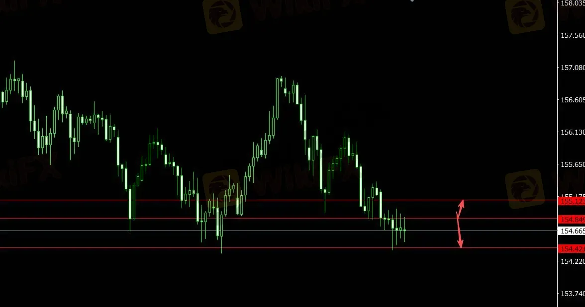 美元指数承压,日元下跌,关注支撑位154.420,4小时看多至155.120;关注压力位154.850,4小时看空至154.290。
