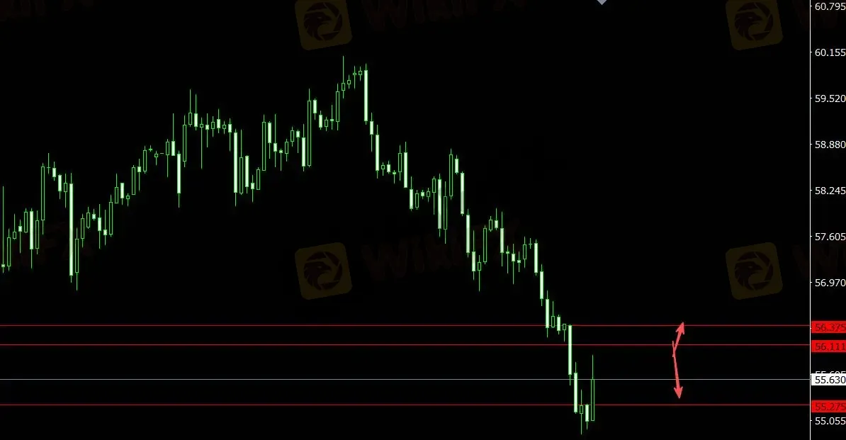 美元指数承压,原油受支撑,关注支撑位55.280,4小时看多至56.380;关注压力位56.110,4小时看空至55.060。