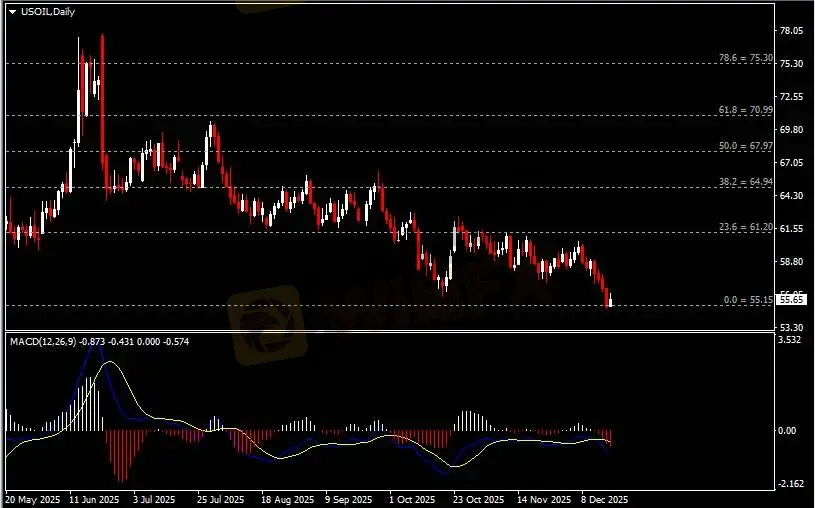 日线图显示油价震荡下跌,当前测试55关键支撑。从MACD来看,快慢线向下运行,红色动能柱温和增量。油价走势基本和动能柱的变化一致。