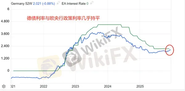 欧央行三大关键政策利率分别为再融资利率、边际贷款利率和存款机制利率,当前利率水平分别为2.15%、2.4%、2%。德国一年期国债收益率为2.03%,基本与存款机制利率持平,意味着债券市场相对存在市场并未存在溢价,这也是欧央行将维持利率不变的特征之一。
