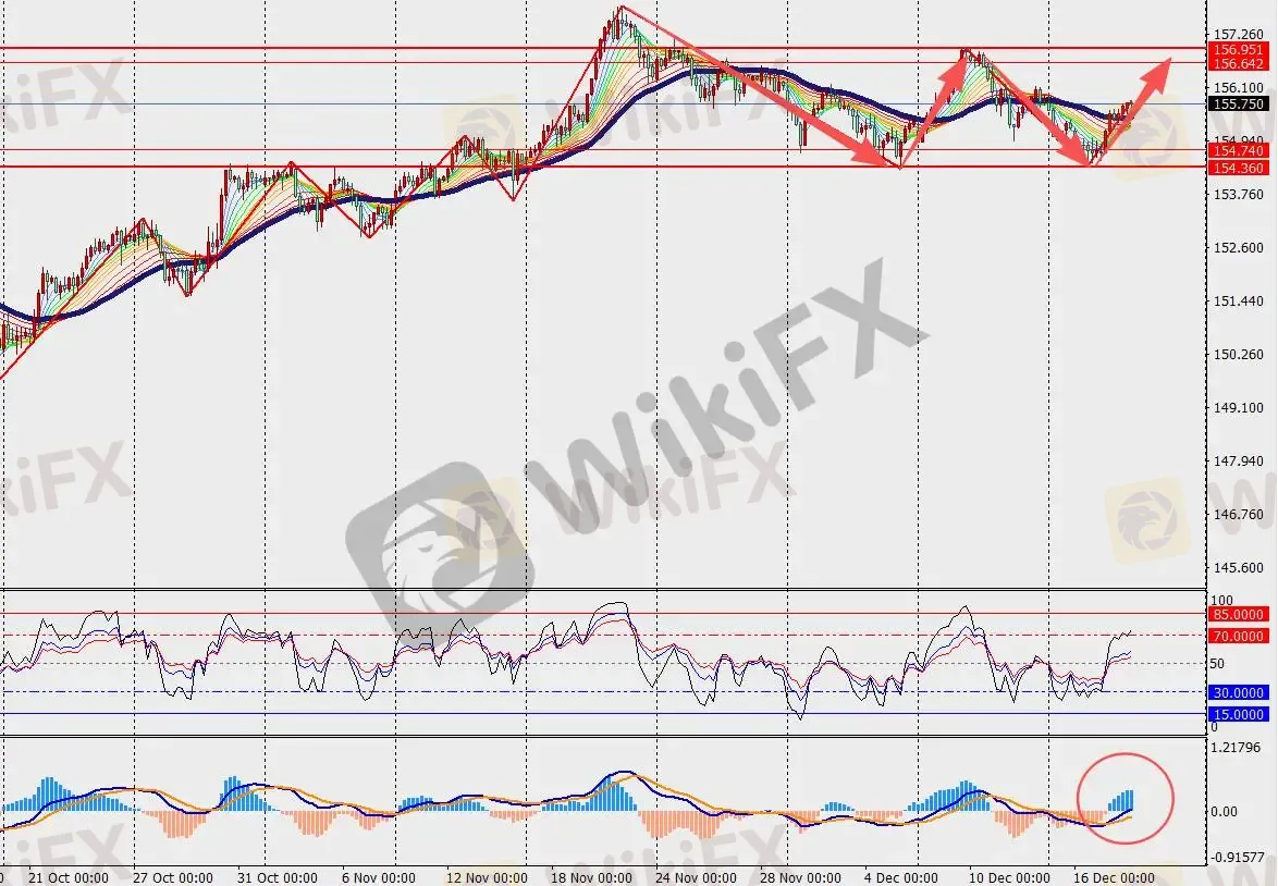 技术面:美元兑日元H4级别震荡反弹,并在48日多空分界线上方运行。此外,MACD双线和量能柱在零轴附近扩张。在经济增长前景尚不明朗的背景下,持续的财政扩张将必然导致日本国债发行规模进一步扩大,增加市场供给压力。
