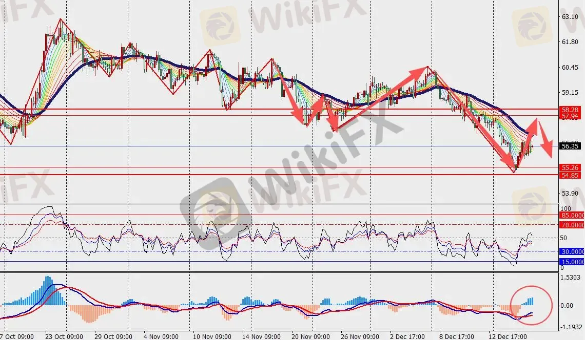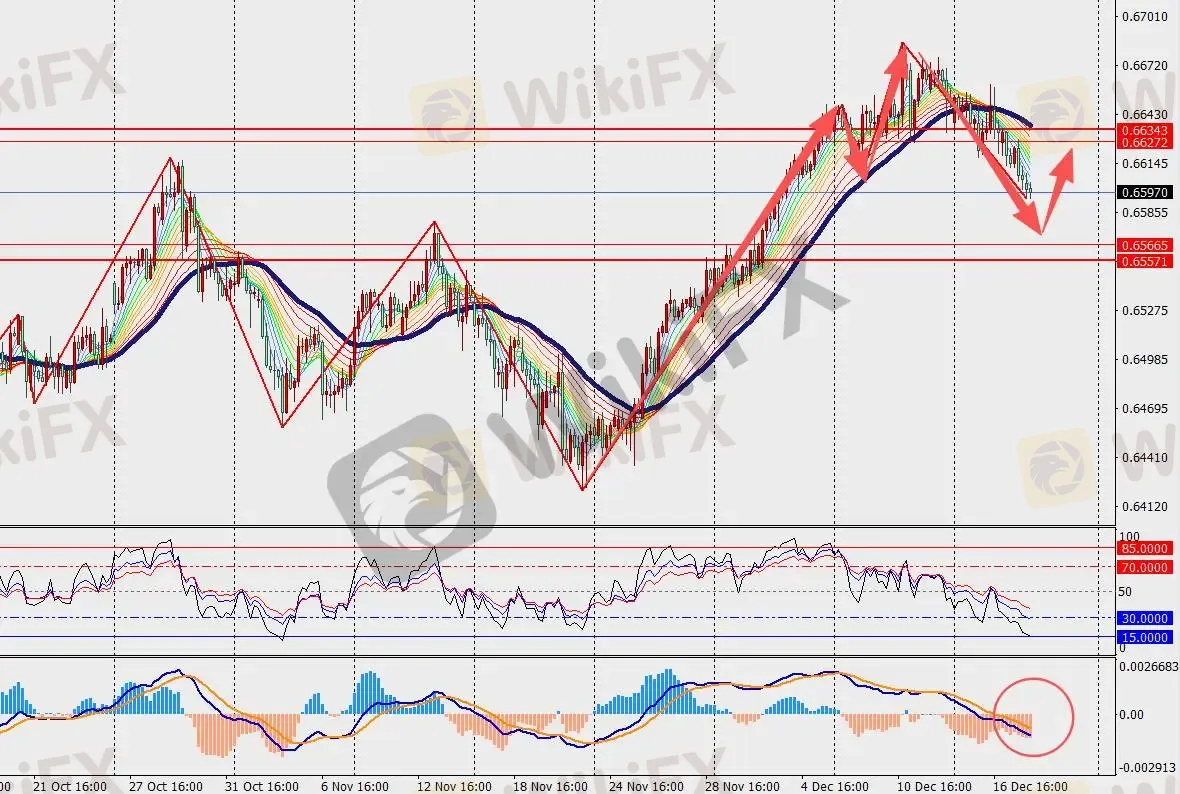技术面:澳元兑美元H4级别震荡下行,并在48日多空分界线下方运行。另一方面,MACD双线和量能柱在零轴下方扩张。尽管澳洲联储承认近期通胀数据的意外走高包含临时性因素,但这已足够引发其对通胀上行风险的高度警惕。