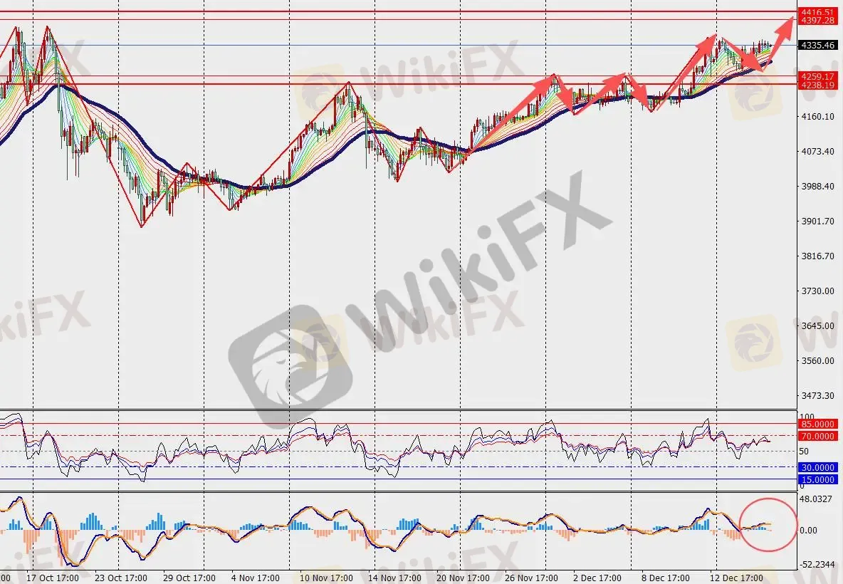 基本面:美国11月就业数据发布后,市场情绪迅速转向乐观,尽管新增就业岗位达到6.4万个,超出预期,但失业率意外升至4.6%,创下2021年9月以来最高水平。这一数据揭示了劳动力市场的潜在疲软迹象,投资者普遍解读为美联储可能加速降息的信号。黄金在低利率环境下表现出色,降息会降低持有黄金的机会成本,从而吸引更多资金流入。