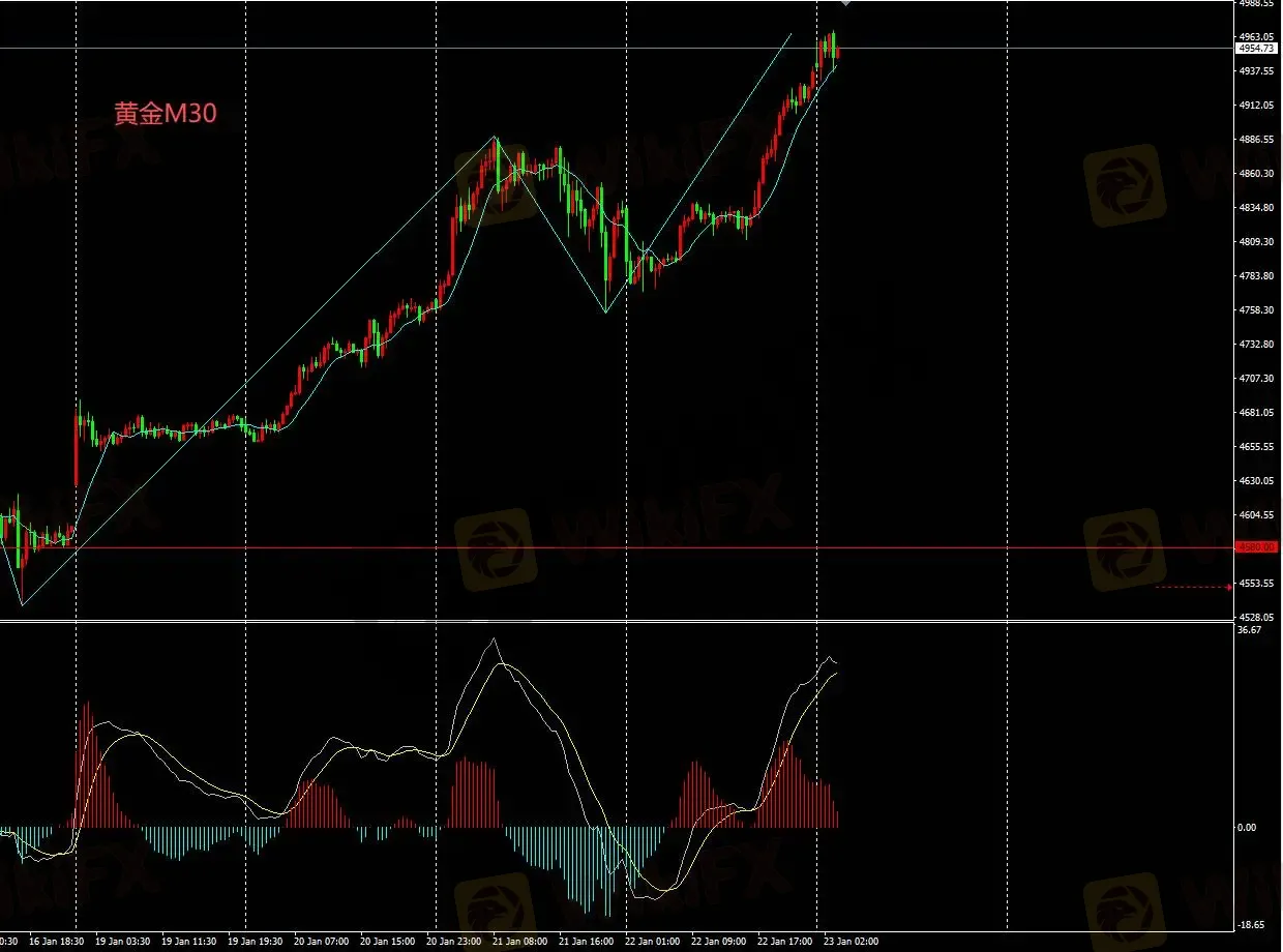 M30图表金价若当日不能坚守4900,则金价有望继续回落至4800一线。