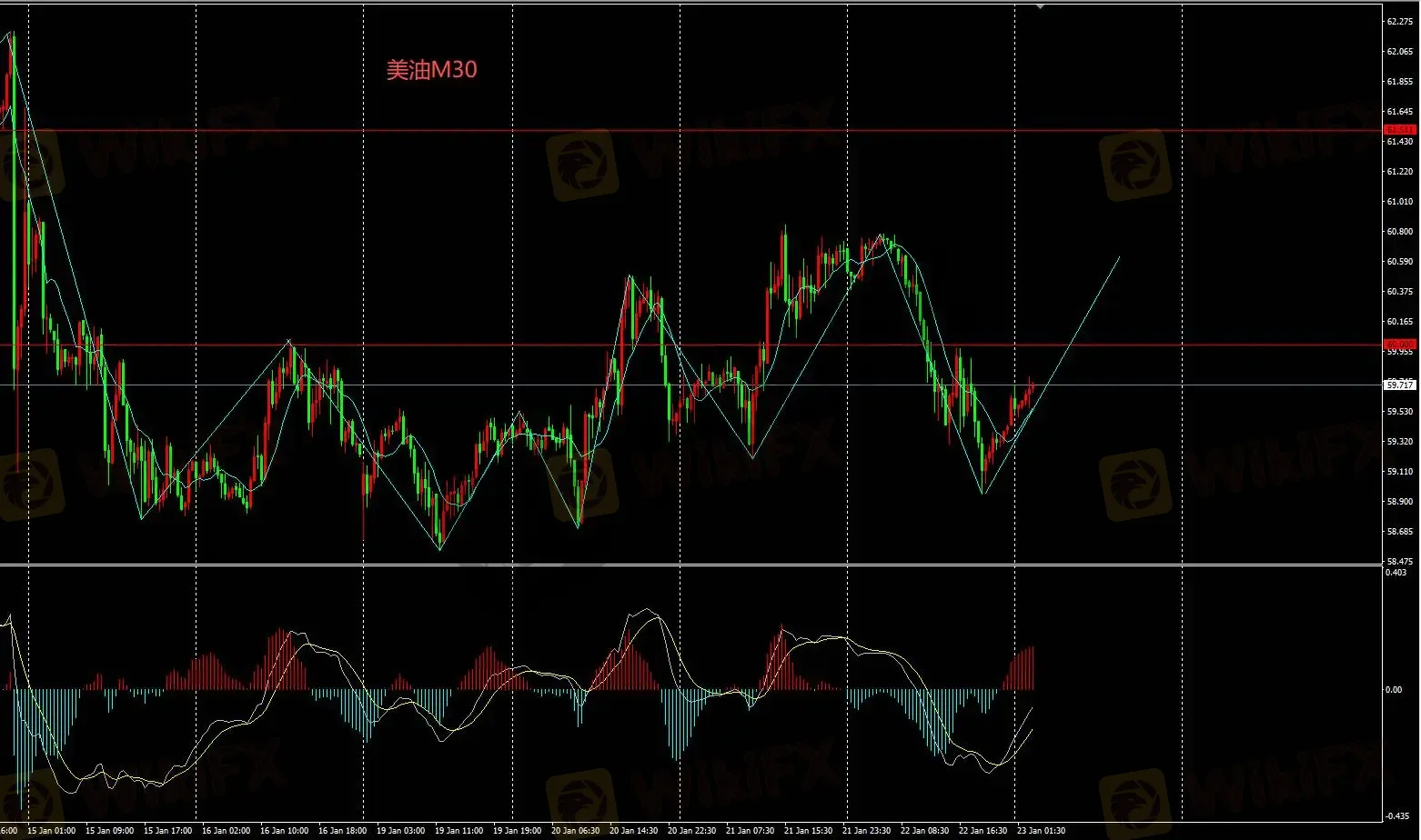 美油价格持续在58.8附近蓄力冲击60在该维持附近反复拉锯;日内方向不明。