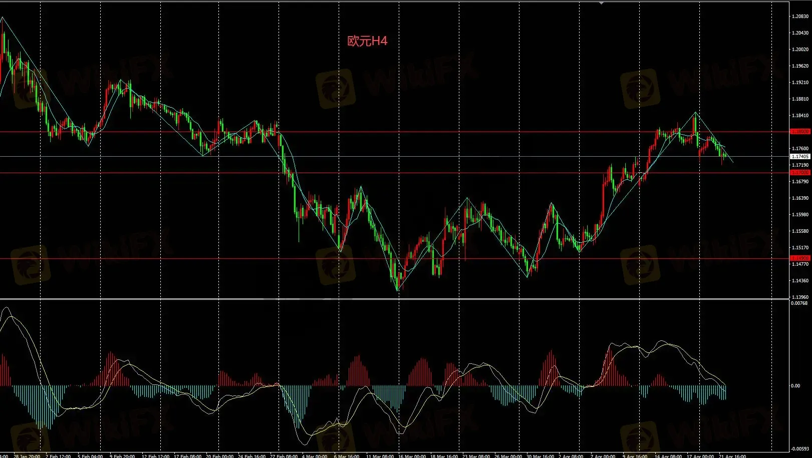 欧元H4价格上周五冲高后再次回落至1.18下方;日内看空,近期持续看多。
