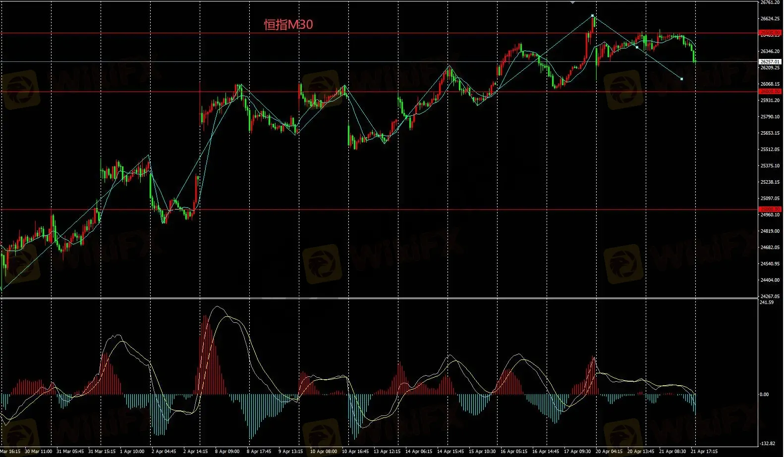 恒指M30看空,价格在26500下方采取逢高卖出操作,目标26000。