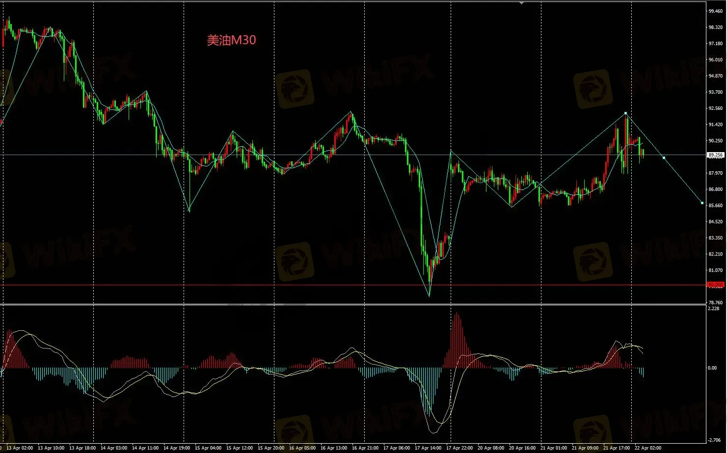 美油M30图表空头需等待结构在91.5附近再次受阻可介入空头。