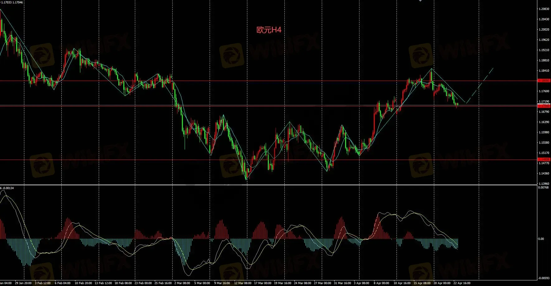 H4图表汇价,采取逢低买入操作,下方支撑1.17,只要汇价维持在该支撑上方持续看多。