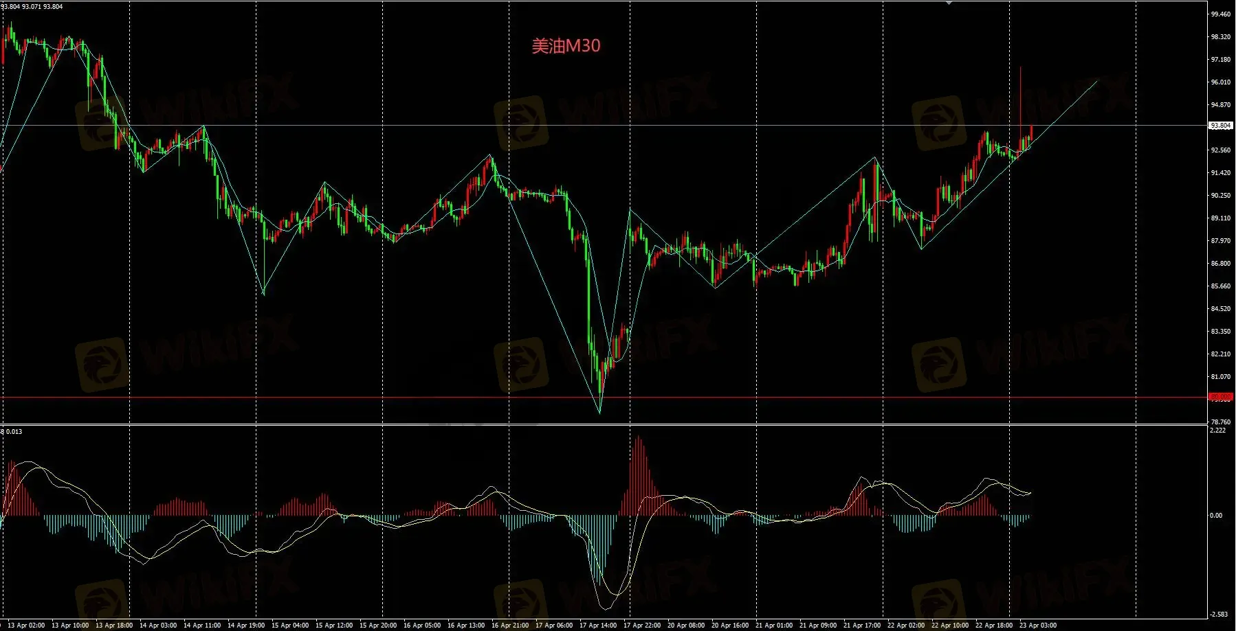 美油M30油价转为多头走势,当前为上涨结构的下跌段,日内逢低买入操作。