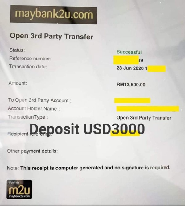 this is the proof i deposited but they dont want allow me to do withdrawal. i will take a legal actionfor this. wait for my lawyer