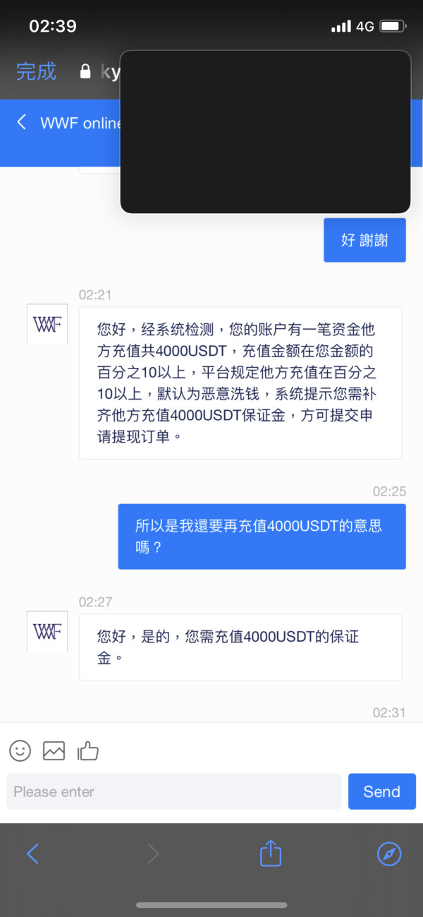 該用戶未證明是WWF的交易者