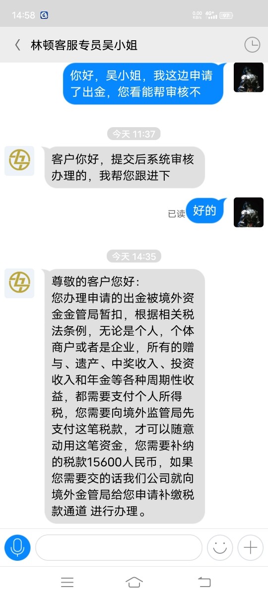 該用戶未證明是林頓金融的交易者